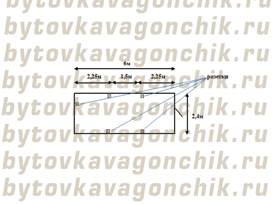 -  электрика в кабель-канале: 3-х жильный провод, светильник-1шт., выключатель-1шт., розетка -5шт., автомат на розетки, автомат на освещение.